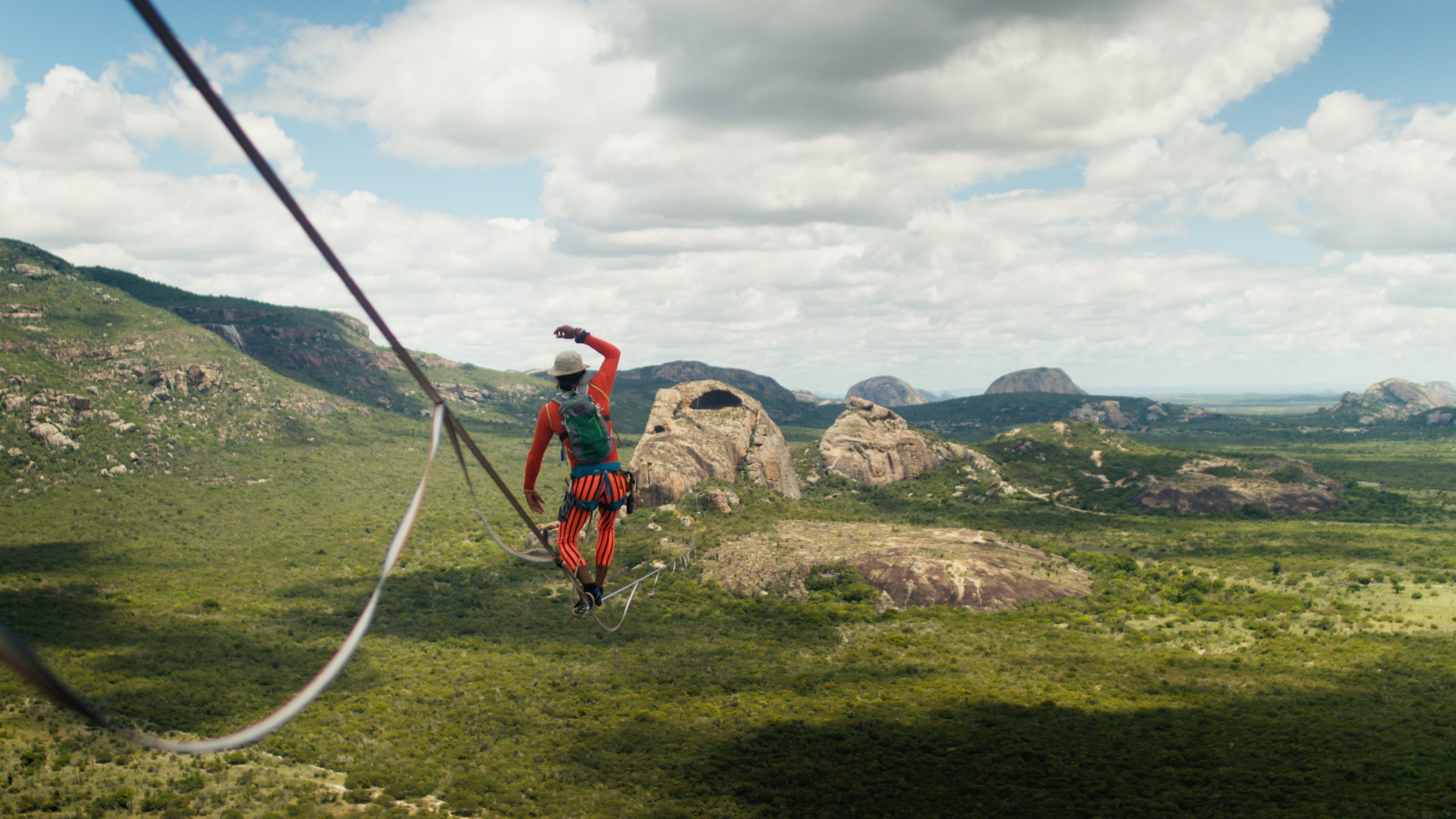 atravessar o maior highline do Brasil com 1.420 metros sobre a Caatinga, em uma conquista histórica